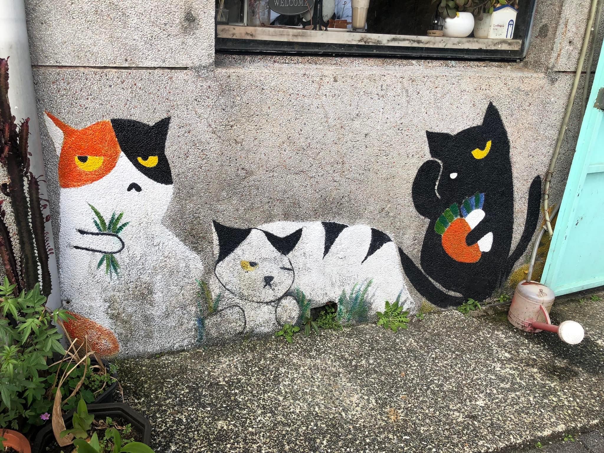 완전 산골마을이지만 곳곳에 고양이들하고 같이 힐링하기에 좋는 곳같다. 다만 식당이 빈약해서 여기에서 뭘 먹겠다는 생각은 버리는게 좋고, 타이베이 메인역에서 먹거나 지우펀에서 식사를 해야할 것 같다. 고양이 펑리수 이런거 팔기는 하는데 그닥!!