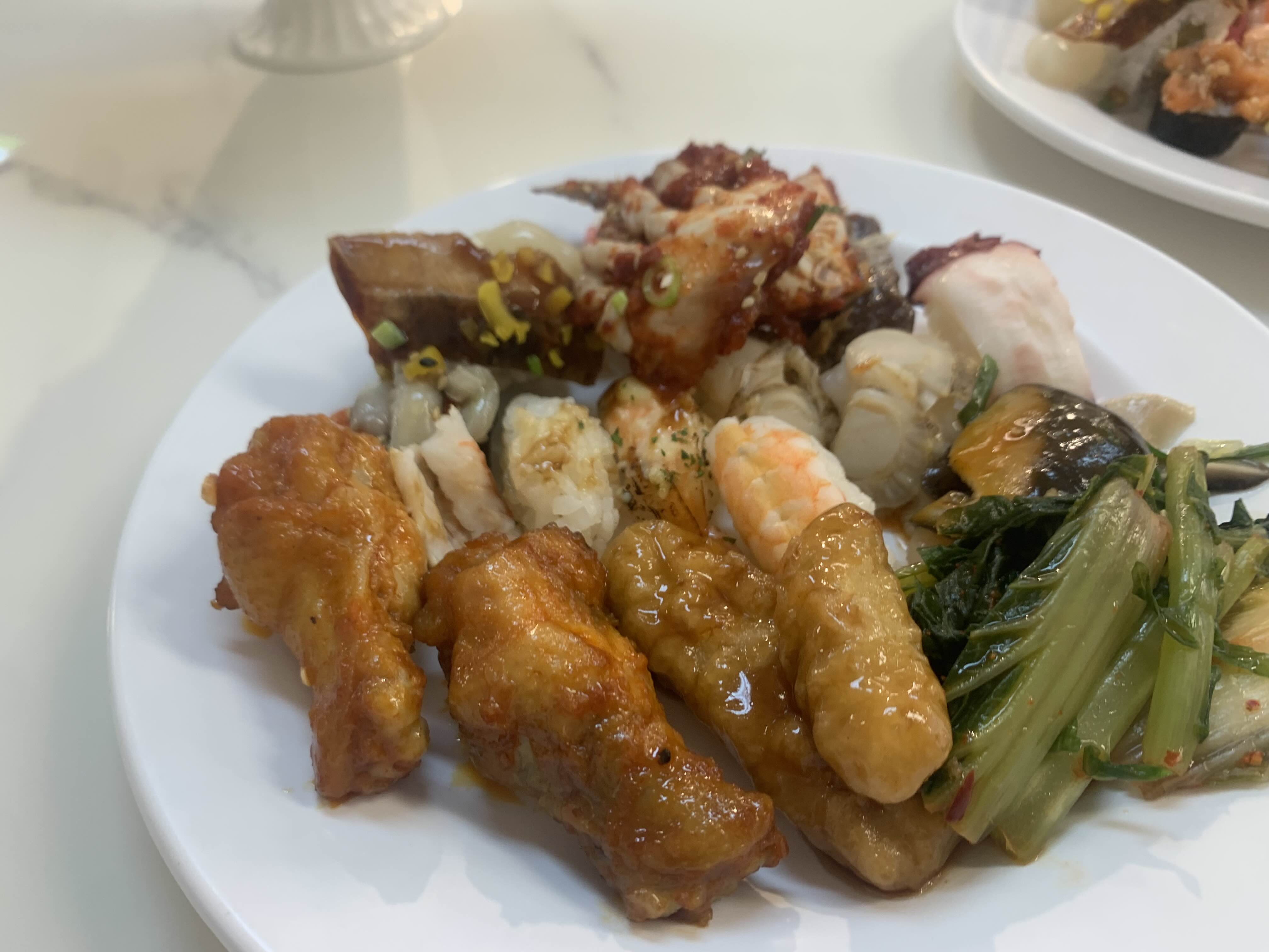 8종 이상의 롤 그리고 여러 초밥들이 있어서 진짜 골고루 먹을 수가 있고, 팔보채와 깐쇼새우 같은 중식도 있고, 한입크기의 디저트들이 있어서 입가심으로 하나 먹을 수 있다
