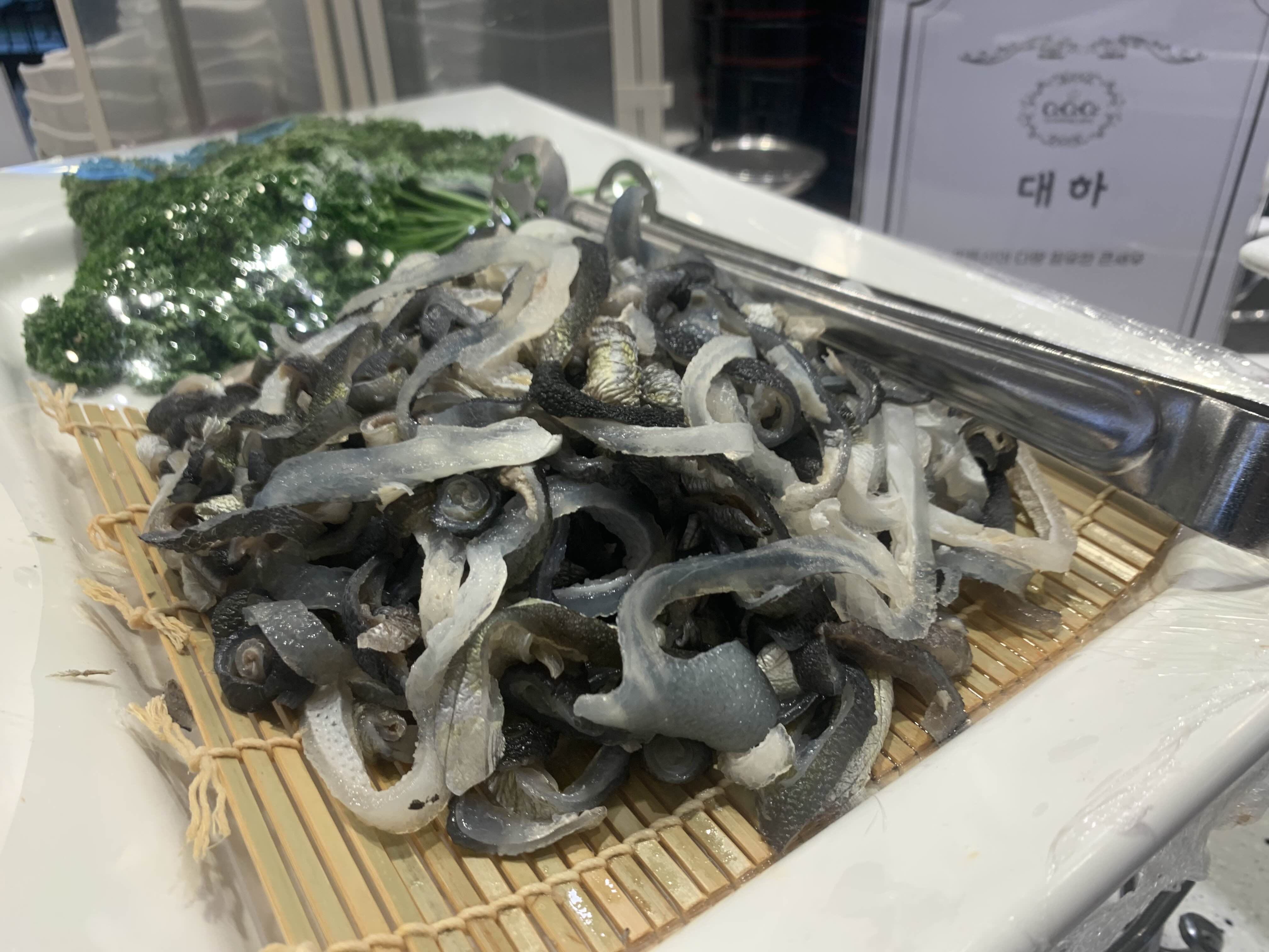 또 라이브 스테이션 반대편에는 육회, 해산물, 회 그리고 새우가 준비되어 있다