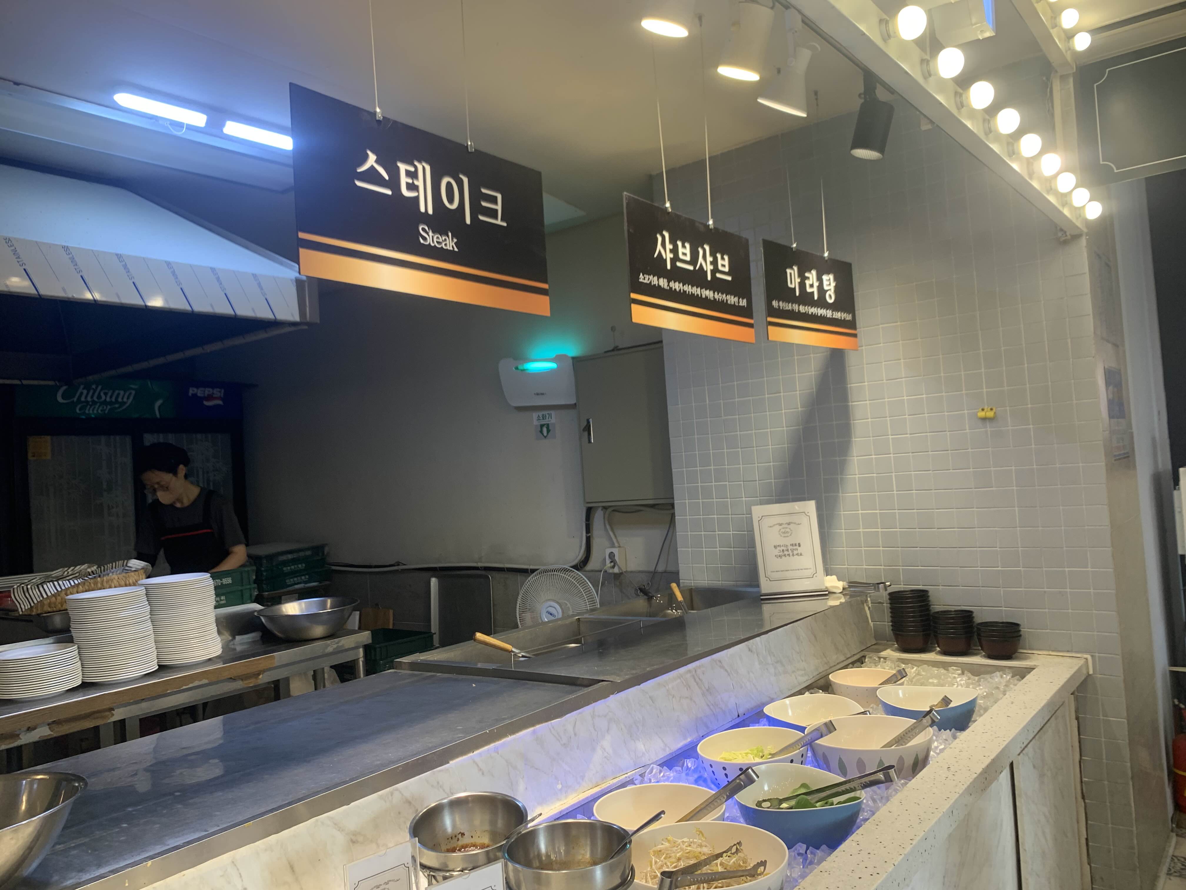 스테이크, 샤브샤브, 마라탕 이렇게 직접 바로 달라고 하면 주시는 공간이 있고