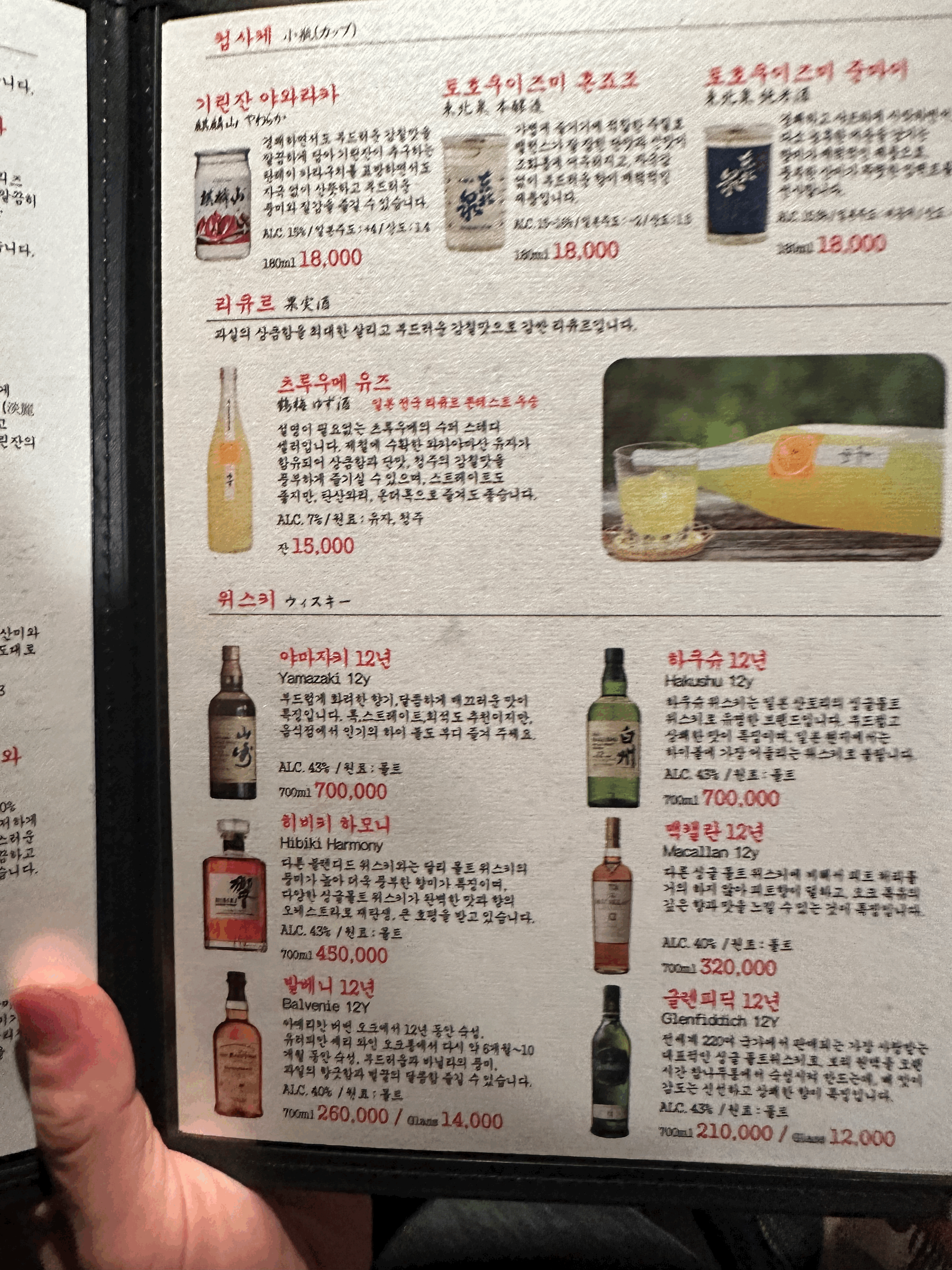 사케, 와인, 맥주, 하이볼 주류도 다양하게 준비되어 있다