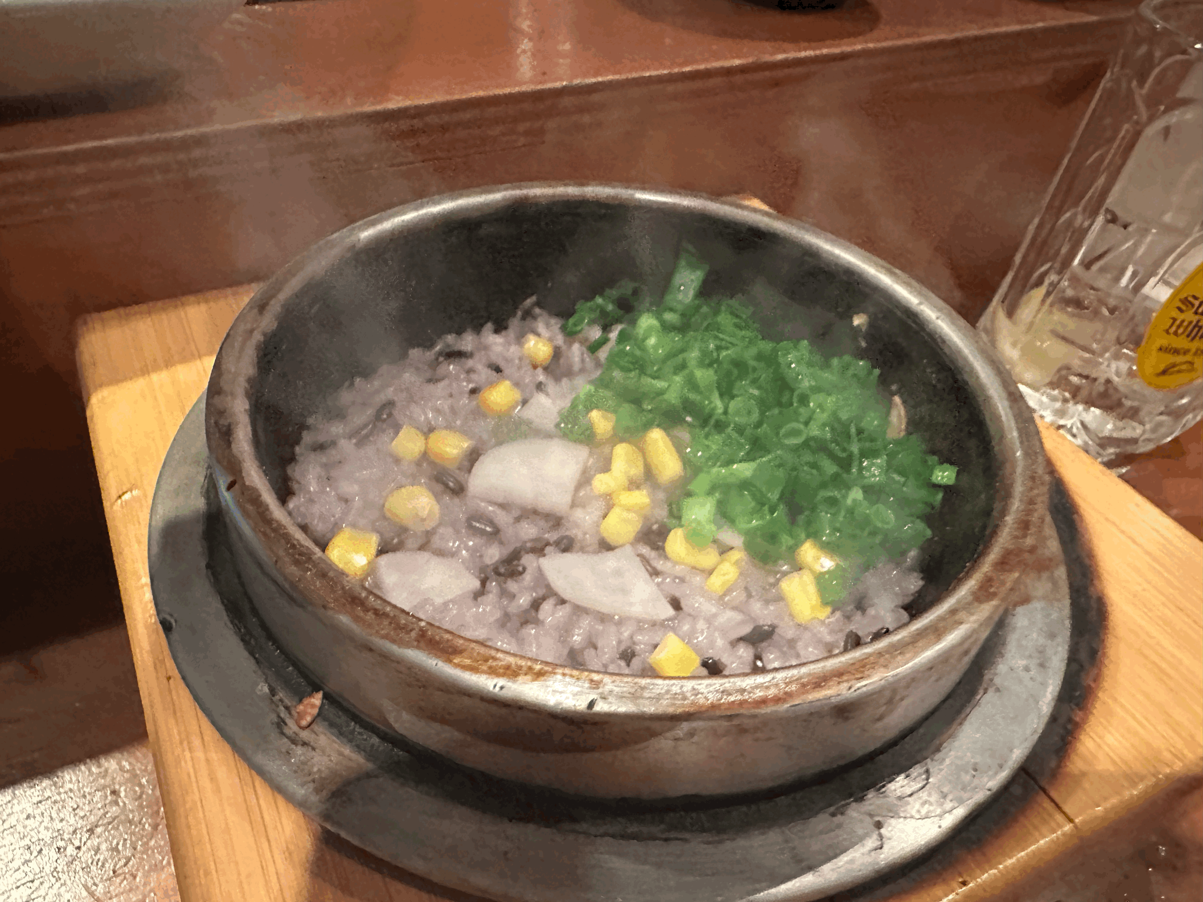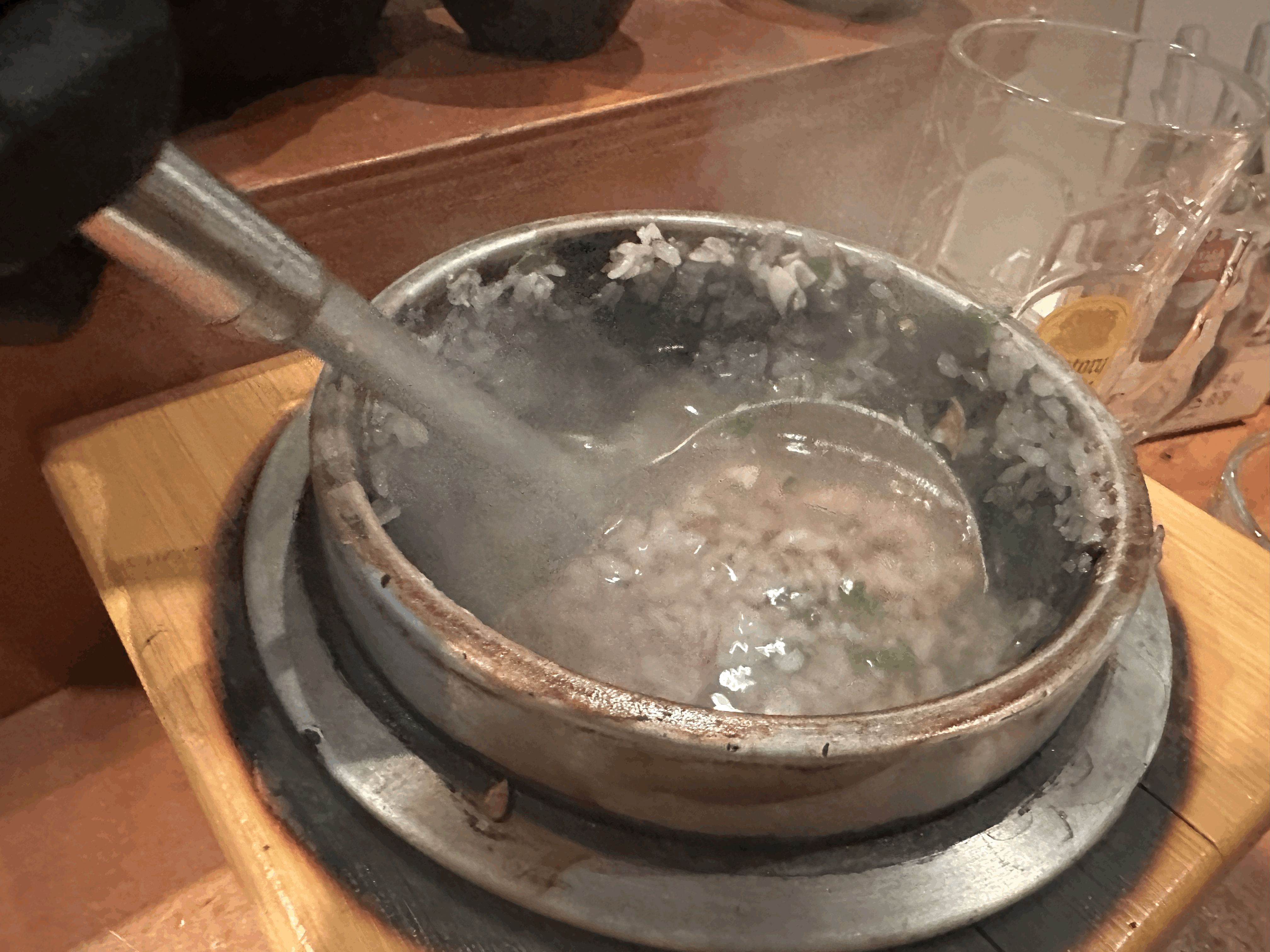 따뜻하게 솥밥에 뜨끈한 물까지 부어서
