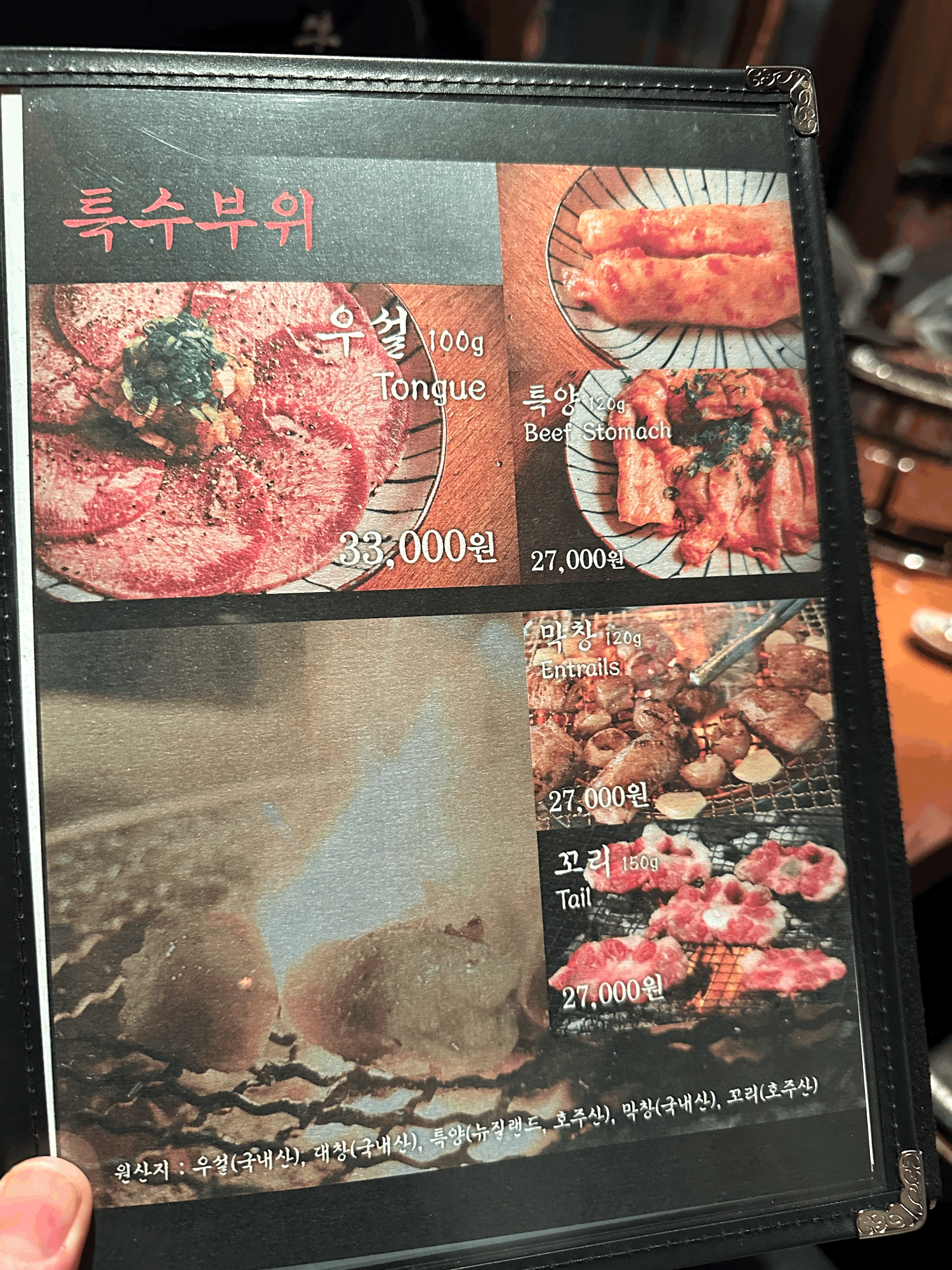 우설, 대창, 특양, 막창, 꼬리