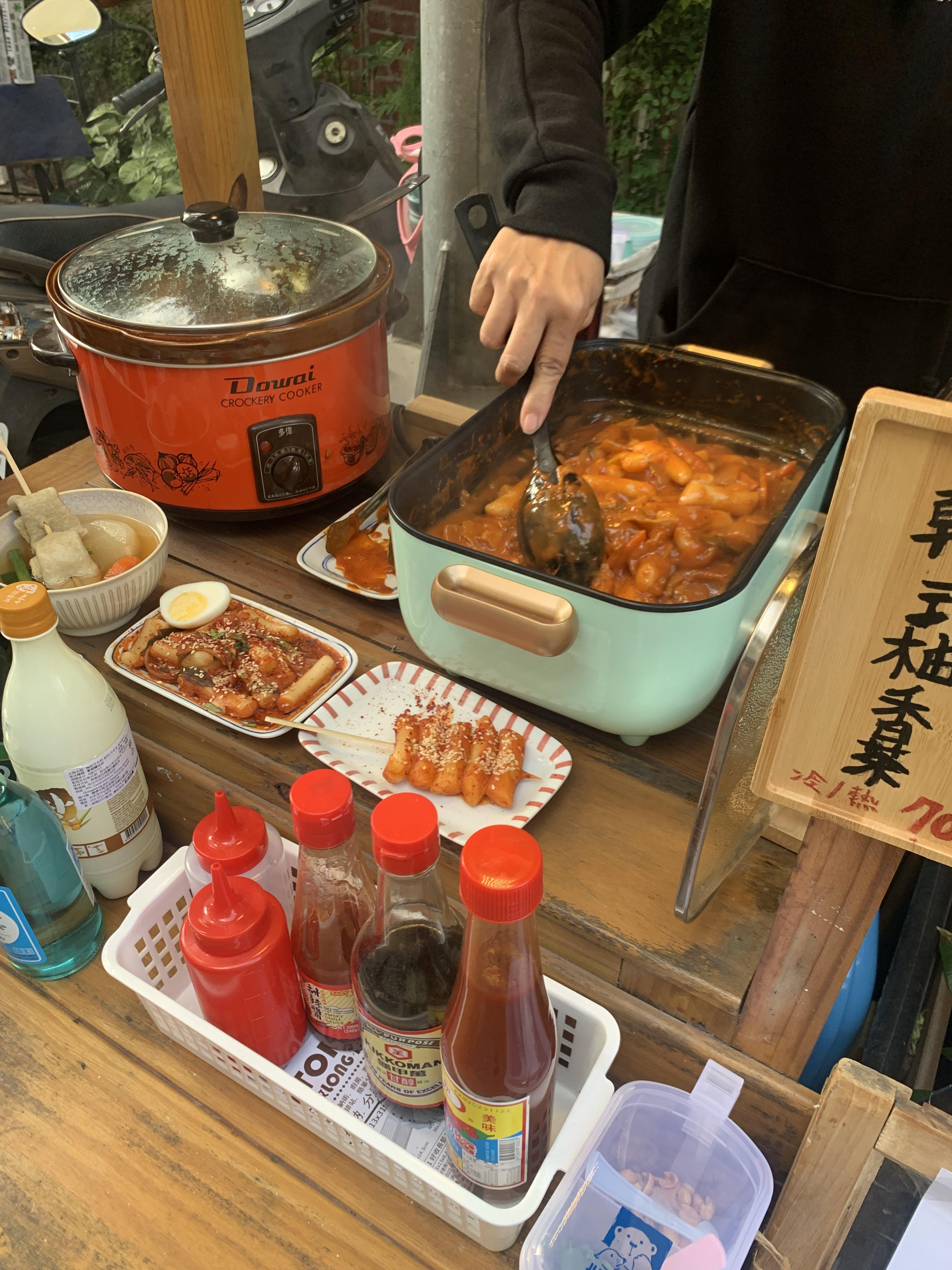 쇼핑하고 맛있어 보이는 가게로 들어가서 먹으면 된다