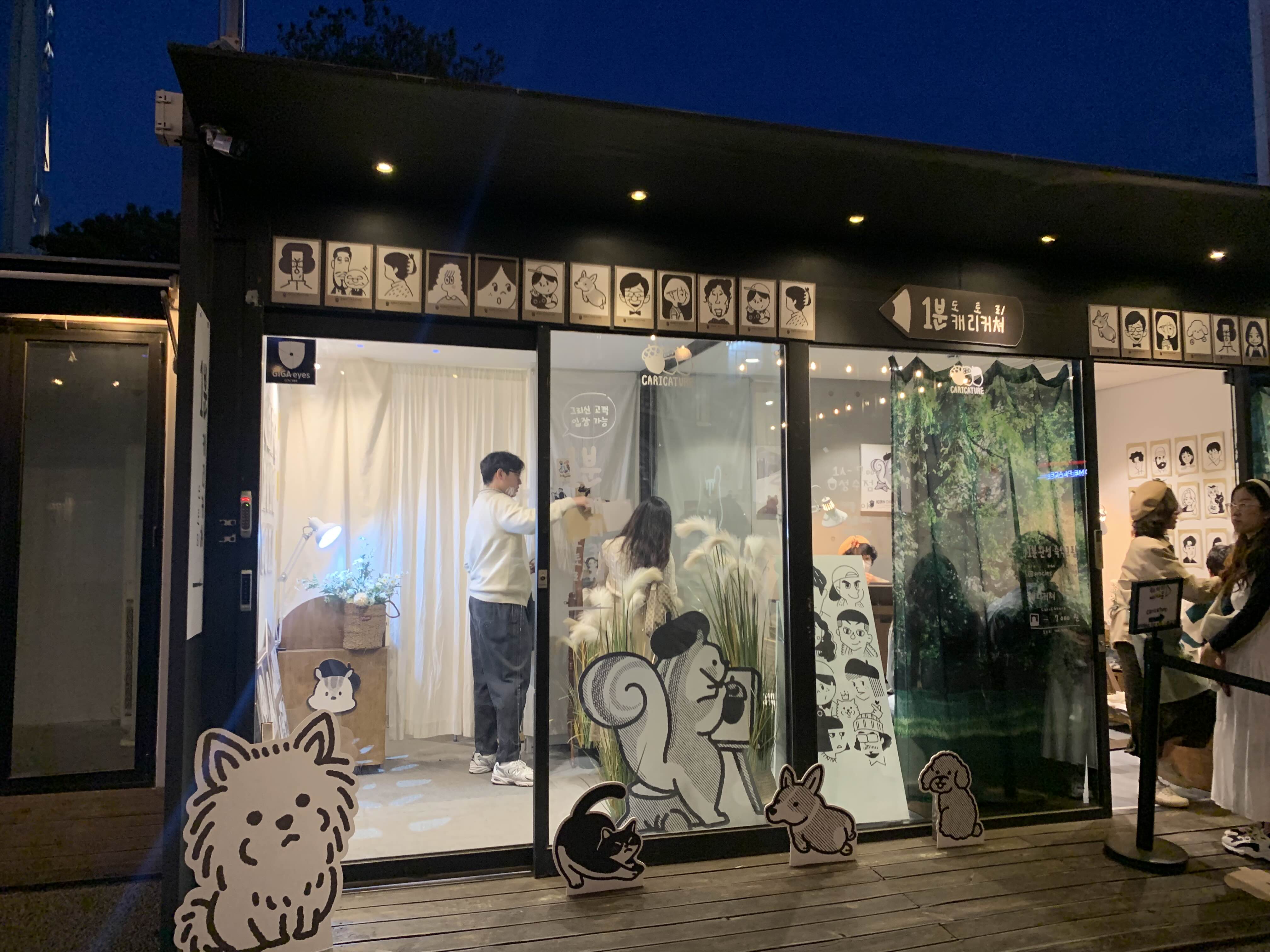 [서울여행] 서울숲 밤 산책 언더스탠드 에비뉴 서울숲 벚꽃 마켓, 1분 캐리커쳐