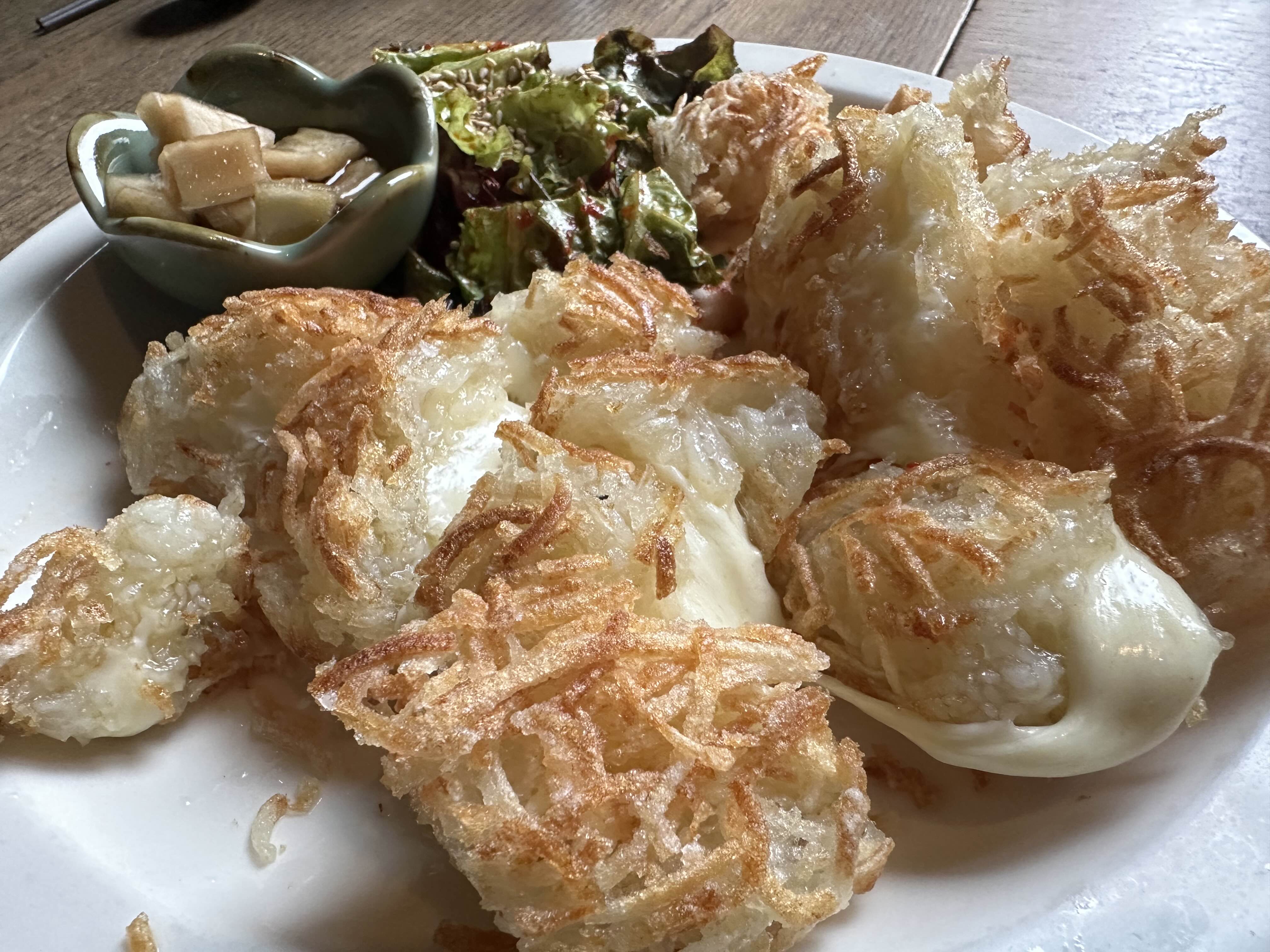 안에 치즈가 잔뜩 들어 있어서 자르니까 치즈가 새어나온다
